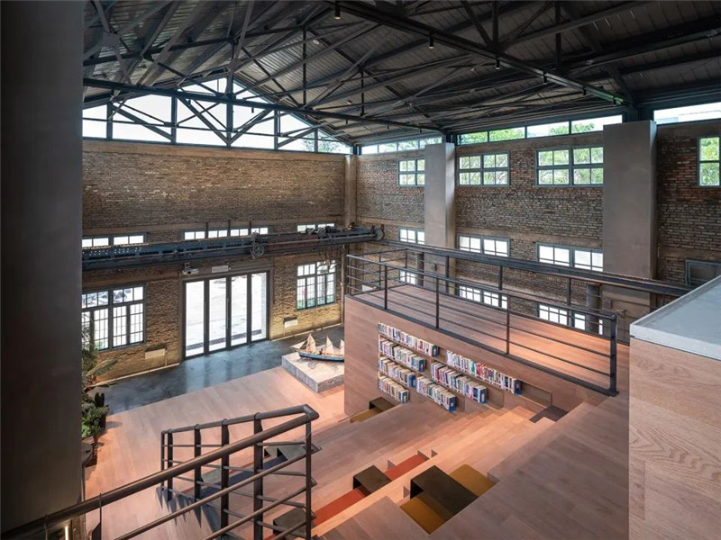 船政书局,位于福州市马尾区船政文化广场内,原建筑为当地船厂的仓库。作为该区域文化精神的聚合点,它汇集了船政文化的宣传、教育以及学术研究等多种功能。设计以“船”为元素,将整个书局想象为一艘在文化浪潮中航行的方舟。借由传统船舶的空间布局,书局中形成了多元而丰富的空间组合。