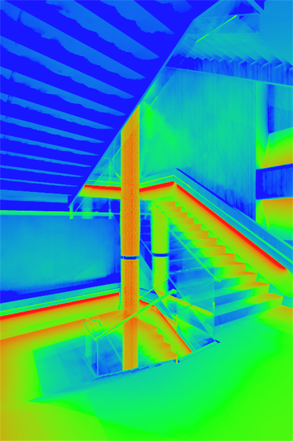 随着不同的天气以及太阳角度的变化,太阳的实时光学太阳图像投射在天花板上,光学装置可以呈现不同的颜色反应,向大楼内部的人们展示晴朗或者多云的天空变化和一天中的时间提示。