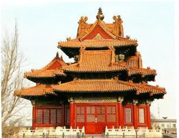 其中,天安门、端门、太和檐门作为前导,采用重檐歇山顶。午门为故宫正门。门楼采用最高等级的重檐庑殿顶,两侧辅以重檐攒尖阙亭。太和殿作为至高所在,同为重檐庑殿顶。而其后地位稍逊的保和殿,则降为重檐歇山顶。太和殿广场东西两侧的体仁阁与弘义馆为单檐屋顶顶二层楼阁。与太和殿形成很好的匹配关系。而中轴线两侧的侧门及北向的乾清门则均使用单檐歇山顶。四角辅以高耸的重檐歇山崇楼,进一步完善了整个空间的等级秩序关系。