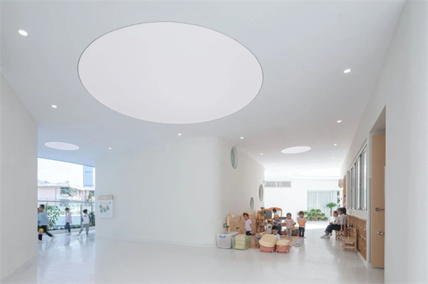 Shenzhen is the city with the highest spatial density in China, while the site is located in the center of an old community in the highest density zone in Shenzhen. For children, this place needs a small town more than just a row of classrooms. The architect adopts a natural and organic layout... surrounded by green trees, new blocks rise gently, and the flowing space slowly blooms, bringing more cheers and happiness to this old neighborhood. Each classroom is surrounded by nature. The space without names in between classrooms may be small or big, narrow or wide, up or down.