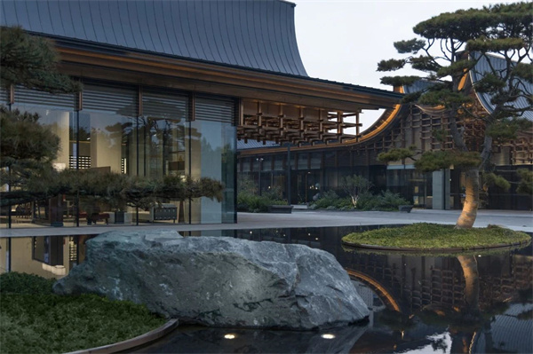首先,“门礼·重门迎宾”彰显东方礼序的底蕴与尊贵感;其次,“廊序·松石水镜”引领体验东方美学的温婉与雅致,感受其独特的品质感;再次“堂和·归堂静亭”延续东方自然美学营造仪式感;接着,“园乐·游园雅趣”享受自由惬意的氛围与雅致感;最后,“庭境·闲庭别苑”,感受自然包裹的意境与诗意感。