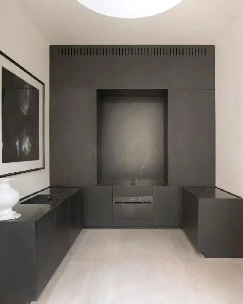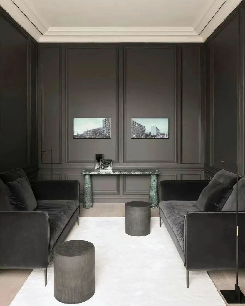 书房采用深灰色调,营造出私密感,为主卧提供了一个静谧的过渡空间。整个公寓通过现代设计与历史建筑风格的融合,成功实现了历史与现代的和谐共存。