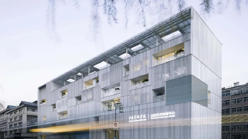 此项目为旧建筑改造,基地位于济南大明湖南岸,建筑置身于略显老旧的传统街区,而新的建筑将作为艺术文化空间向城市开放,身兼美术馆、剧场、艺术书店、文创体验、艺术教育和特色餐饮等多重职能。