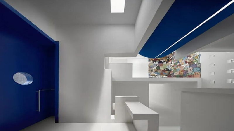 仁社区美术馆的内部设计充满了艺术气息。通过空间的变化和自然光的游走,赋予了空间丰富的节奏感和层次感。中庭尽头的楼梯通向二层,各个空间相互渗透、流淌,形成了多个暧昧空间。