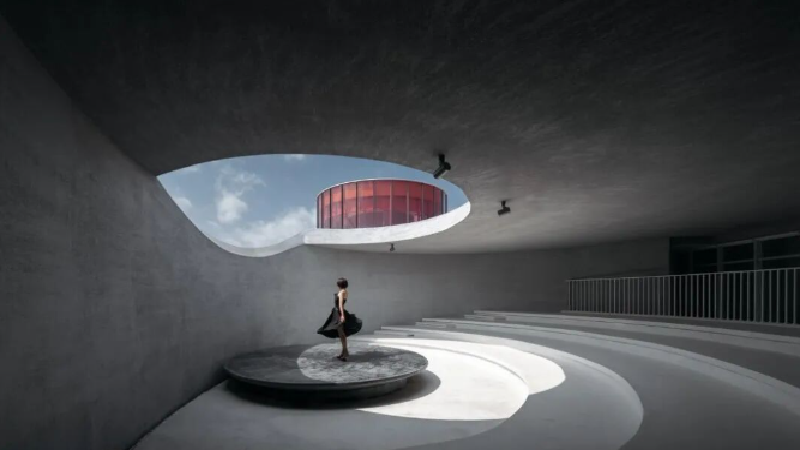 独白美术馆的设计理念是将不同的人在不同的空间中同时存在,但每个人都可以以一种艺术的方式独处。整个美术馆就像一个展开的手卷,从入口小剧场的明暗交错开始,经过艺术长廊、敞廊和水院等不同空间,最终到达明亮的美术馆。在这个过程中,观众可以感受到空间所承载的设计哲学与多元艺术的碰撞。