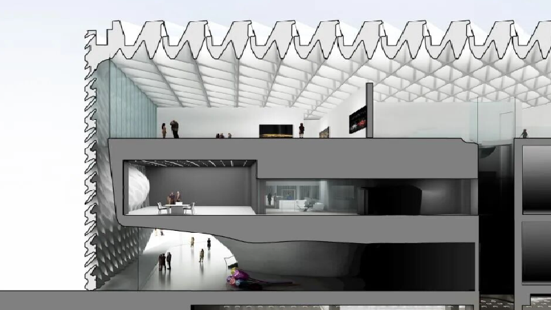设计具有现代感十足的特点,充分考虑了艺术、建筑和景观之间的无缝连接。以灵活、多功能的展览空间为主导,为艺术品的展示和观众的参观提供了多种可能性。新馆的外观以简洁的线条和流畅的曲线为特点,与周围的建筑和自然环境相融合。同时,新馆内部的空间布局也非常人性化,为观众提供了舒适、便捷的参观体验。