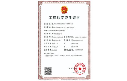 工程勘察专业类((岩土工程(勘察))乙级;劳务类(工程钻探)