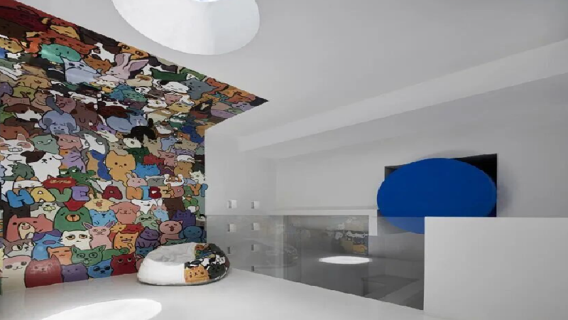仁社区美术馆的内部设计充满了艺术气息。通过空间的变化和自然光的游走,赋予了空间丰富的节奏感和层次感。中庭尽头的楼梯通向二层,各个空间相互渗透、流淌,形成了多个暧昧空间。